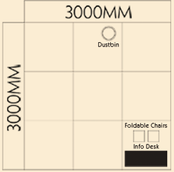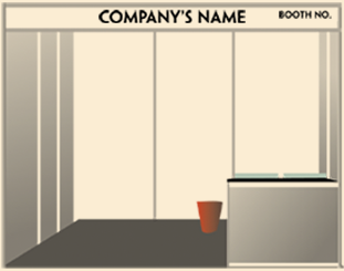 Partitions, carpets, 1 x information desk, fascia board with company name, 2 x chairs, 2 x 40watt fluorescent light, 1 x 13amp socket and cleaning